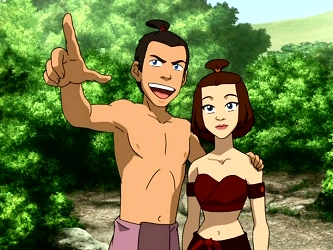 File:Sokka and Suki in beach clothes.png