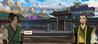 "Because we've been without an Avatar so long, the duty has fallen on me. And because I have no claim on leadership from noble blood, I have to do it solely by creating ties of personal loyalty. [...] I'm only a stopgap measure. A substitute. The responsibility of keeping the Earth Kingdom stable and in balance with the other nations rightfully belongs to the Avatar. [...] I blame myself for [Kuruk's] demise. [...] I didn't teach him wisdom. I believe the world is still paying for my mistake in that regard."