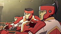 - During the third round against the Golden Temple Tigerdillos, when it is just Mako against the last remaining player of the Tigerdillos, the player is supposedly an earthbender, yet the color of his helmet is blue, indicating a waterbender. Later, the color changes to the correct green.