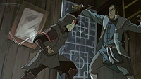 Meanwhile, Bolin and Asami destroyed the aircraft on the ground as well as the airstrips to prevent Equalist reinforcement to take off. However, Hiroshi Sato intervened and faced his daughter. After a brief battle, Hiroshi was captured, with all biplanes as well as airstrips destroyed.[9][10]