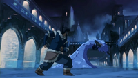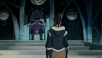 At the palace, Korra called out for her uncle, but found only Northern soldiers tied up. Going to the upper level, she discovered a group of Southern rebels, one of them carrying Unalaq over his shoulder. Korra tried to negotiate Unalaq's release, even offering to let them go and covering for them, but the rebels attacked her.