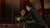 After freeing Wu, Team Avatar was boxed in from both sides of the train car by Earth Empire agents, forcing them to get on the outside of the train. But as they leaped onto an adjourning car, their opponents began to metalbend the roof of the car from both sides to trap them, forcing Korra to airbend herself and her friends off the train and using an air sphere to cushion their fall, finally thwarting the kidnapping attempt. After being freed, Wu thanked Team Avatar, especially Korra. With it being too dangerous to bring Wu back to his hotel room, Wu was brought to Asami's mansion for protection, where Mako's family had been living since the fall of Ba Sing Se, and they agreed to take care of him.[1]