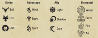 This group of traits represents a character's fighting style. These traits appear as animal symbols.