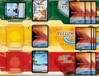 As shown in the previous subsection, Player 2 now replenishes energy from the discard pile into her green and yellow zones, one energy each, as Player 1 counterattacked from the yellow zone in the last turn. After this, Player 2 flips a card from her deck into the green zone. If it is a strike card, the game continues as has already been outlined above. There are other cards besides strike cards, however. One possible draw from the deck is an advantage card. An advantage card is not an offense- or defense-based card in the vein of strikes, instead being used to aid or assist the player who draws it in a number of different ways. Some advantage cards allow the player to scan through his or her deck, while others strengthen a strike's force or alter the amount of a player's energy.