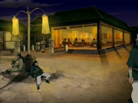 Ba Sing Se remained mostly unaffected by the widespread unrest that followed Avatar Kuruk's death.[20] Many of the capital's nobles and bureaucrats allied themselves with the Earth Sage Jianzhu,[27][28] although the latter never firmly controlled the capital due to the continuing influence of the Earth King.[29] The outward appearance of stability was deceiving, as Ba Sing Se was engulfed in a series of secretive wars among the Earth Kingdom's royal family. Royal princes employed assassins and waged bloody feuds in the "dark corridors" of the massive city, mostly unbeknownst to the local population and the world at large. From 306 BG, the waterbending assassin Amak killed several royal family members in Ba Sing Se.[30][31]