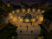 The Lower Ring is home to the poor classes of Ba Sing Se's society and the majority of its population. In the time of the Hundred Year War, these consisted of newcomers to the city, including its multitude of refugees. Most of the Lower Ring residents work with their hands as artisans, laborers, and craftsmen, while the rest are merchants and food vendors. Due to the impoverished state of the citizens of the Lower Ring, as well as the influx of refugees, the crime rate is significantly higher.[8] The Lower Ring is also the most densely populated area of Ba Sing Se,[65] with the most crowded area being the City Block, a haven for the very poor.[23] Buildings in the Lower Ring are generally small, because the Lower Ring houses the majority of the populace and many people need to be crammed into the space available. The roofs of most buildings in the ring are brown tiled, indicating the poor status of the owners. The Lower Ring's status and poverty have remained unchanged over centuries. While parts of it were modernized after the Great War, mainly transportation and communication, the Lower Ring has further deteriorated into an overgrown, overpopulated slum with a foul odor, detectable from an airship overflying the area. It is impossible to travel from the Lower Ring into the Upper Ring without a valid passport.[50] Lower Ring citizens can be issued work passes to facilitate their travel to the other rings for labor purposes; such individuals act under a curfew, and must return to their dwellings at certain designated times.[66] After the assassination of the Earth Queen in 171 AG, Ghazan used lavabending to take down the wall that separated the Lower Ring from the rest of the city.[11]