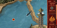 The waterbenders and earthbenders have built walls in front of their villages for protection from raids. They are between towers or fortresses that the crew's "bending energy" must destroy in order to break down the walls. Bending energy gradually increases automatically while dormant and can be turned into powerful fireballs. Holding down the "A" or "S" key for a long time raises the fireball's power, but doing so also consumes more bending energy.