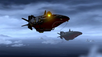 As Tenzin, his family, and Lin left Air Temple Island on Oogi, they noticed two airships trailing the bison. Lin shot a metal cable onto one of them, telling Tenzin not to turn back despite what might happen. She landed on the airship and managed to destroy it using metalbending. However, as she mounted the next airship and prepared to destroy it in a similar fashion, she was knocked out by an electrified rope, shot at her by two Equalists. She was delivered to Amon, who took away her earthbending after she refused to disclose any information regarding the Avatar's whereabouts.[1]