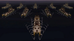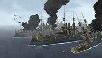 Several United Forces battleships were in port while Korra and Iroh discussed a plan to end Chief Unalaq's military intervention in the Southern Water Tribe. However, President Raiko discovered their plan and had all the available ships placed on lockdown.[8]