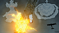 Upon arriving at the contested metropolis, the fleet was damaged by a large number of Equalist naval mines. General Iroh proceeded to use his ship's intercom to tell his waterbending and earthbending soldiers to get rid of the mines. As soon as he issued the command, however, his fleet of battleships was attacked by a large number of Equalist biplanes. Despite the best efforts of the United Forces and the destruction of many enemy aircraft, the entire fleet was destroyed.[4]