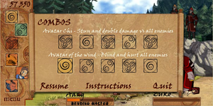 There are several combination moves that Aang can perform and, if he successfully completes a sequence, he will be awarded with a point bonus and some special effects will occur. The combinations are: