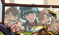When Mai joined the Royal Fire Academy for Girls as a teacher by Fire Lord Zuko's request, a cicada beetle flew into the classroom and landed on Princess Kiyi's shoulder, startling her. Mai asked the girl to calm down, explaining that it was just a little cicada beetle and probably flew around looking for a place to land. She told the class about the insect's life cycle and prompted them to imagine spending their whole lives underground in total darkness, never knowing there is a different world outside, and when they finally get to see that world, they only get a week to enjoy it. Then, Mai defied the Academy's traditional teaching style by inviting the girls outside to catch bugs, which earned a positive reaction by them but an accusatory glare from Headmistress Shihan. The teacher and her students created a terrarium for the class in which they could watch the cicada beetles hatch, and collected leaves for them to eat. Nuo, one of the girls, named her cicada beetle Chirpy.