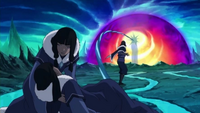 The twins returned to the South Pole, where they discovered their father emerging from the spirit portal. As Unalaq remained silent about what he had been doing in the Spirit World, the twins reported that they had failed to capture the Avatar, but assumed her to be dead.[14]