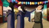 After Korra managed to restore the southern lights and emerged from the forest unscathed, Bolin was the first to hug her. However, Eska broke it up by waterbending an ice wall between the earthbender and the Avatar, sliding the former back to her, demanding to know why he was initiating physical contact with another woman. Bolin nervously smiled, and Eska released him, before walking away with her brother.[11]
