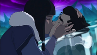 Eska demonstrated herself as possessive, dragging Bolin away from Korra while the earthbender was embracing the Avatar.[11] She also told him that he would come with her to the Northern Water Tribe, where they would live out their lives together in "icy bliss", and threatened to freeze him and feed him to dolphin piranhas whenever he tried breaking up with her.[5] She tried to force Bolin to marry her and gave him a restyling so that he matched her more in appearance. After she was stood up, she broke her characteristic emotionless state by crying and tracking down Bolin in a fit of rage,[12] as well as ruthlessly attacking Korra and blaming her for stealing her prospective husband away from her.[13] While she subsequently returned to her general stoic attitude, Bolin remained dear to her, as he was able to beguile her to free both Mako and himself from an icy prison.[6] Following Unalaq's defeat, she shared a heartfelt farewell with him as they parted ways.[1]