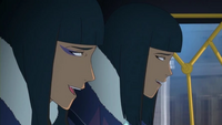 When the Southern Water Tribe rebels launched their attack on the Southern capital and managed to push back the Northern defenders, Desna and Eska led numerous dark spirits into battle, tipping the scales in their favor. With quick water strikes, they managed to push the rebels into a retreat. They were temporarily forced to go on the defensive by Tonraq, though when he charged their father, the twins thwarted his advance with an ice block to his side. Before they could proceed with a follow-up attack, however, they were ordered to leave Tonraq for their father to deal with, and they retreated to a nearby alley.[15]