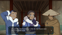 After succeeding, Xin Ming and her allies entered the dojo where the master confronted the group. At first, it seemed as if the master was trying to block their way, as Xin Ming had only won the contest by involving outsiders. When Team Avatar defeated the master in a duel, the latter kindly stated that Xin Ming and her friends had won fairly and proven to be the strongest. When one other student protested, the master declared that the strongest was not the one who conquered all, but the one who unites them, and that Team Avatar and Xin Ming managed to defeat the others even though they were outnumbered. Soon after, as Team Avatar was preparing to leave, the master approached Katara and Sokka, asking the siblings to lend their strength to Aang and revealing that they knew the boy's identity as the Avatar.
