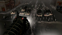 Following the implementation of a new law that imposed a curfew on nonbenders, residents of the Dragon Flats borough took to the streets in protest. Police units were called to the scene, described by the dispatcher as an assembly of armed Equalists to be handled with caution. Team Avatar responded to the call, only to find ordinary citizens barricaded in the streets. The officers demanded that the residents disperse and return to their homes, but they refused, insisting that the electricity in the borough be restored. Accusing the nonbenders of being affiliated with the Equalists, Tarrlok ordered the round-up and detainment of all civilians present. Team Avatar attempted to reason with the police force and release everyone, but they were all, with the exception of Korra, taken captive for interfering in police operations.[6]