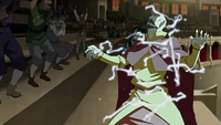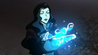 Six months later, Asami used an electrified glove to incapacitate a guard at the Southern Water Tribe prison during an attempt to free Tonraq.[7]