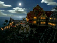 The Ember Island Theater is advertised as the best small stage, local theater in the Fire Nation. It is supported by upper-class Ember Islanders who want to retain the island's pristine reputation. Although the theater itself is magnificent due to recent renovations, the plays performed inside often receive negative reviews. The theater is relatively big, and the stage is surrounded by red curtains. Illumination is provided by several lanterns located in the roof of the structure.