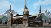 One of Future Industries' factories was destroyed by Kuvira's spirit energy cannon in an attempt to kill Avatar Korra.