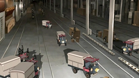 Satomobiles are manufactured on an assembly line, where the automobiles are placed on a conveyor belt and shifted through various work stations so that more parts may be added for completing the vehicle. The cars are put in close vicinity to each other, which allows the process to continue easily. This revolutionary system is swift and efficient, allowing for rapid Satomobile production and therefore more wealth for the company. There are three rows of conveyor belts in the manufacturing building, and between two of them is a long table where tools, car parts, and other materials are placed during manufacturing. They are stored in boxes and baskets, and some are brought to the assembly line when needed for production.