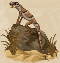 Among the modern, small gilacorns, unicorn horns grow on some, but not all members of the species.[3][4][5] Otherwise, the small gilacorns have petite bodies which are colored brown-black-white. Though usually moving on all fours, they can run a short distance on their back legs like a mongoose lizard and reach high speeds. They are also rather strong, able to carry food sources almost as big as themselves.[3][4] The species is poisonous.[2]