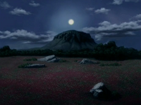 This Fire Nation village lies within a rural area surrounded by forests. The village itself sits on a large bed of rock and includes a lively marketplace where many popular Fire Nation products are sold, including ash bananas and komodo sausages. Aang described the village and its surroundings as "the nicest natural setting in the Fire Nation". It is also located near a vast field of fire lilies.