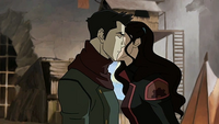 Her relationship with Mako continued to grow during the ensuing weeks. During a heart-felt carriage ride through Republic City Park, she asked him why he was not wearing the new scarf she bought him, to which Mako answered that, while he appreciated the gesture, his scarf used to belong to his father and it was the only remaining part of him he had. In return, Asami told him that she lost her mother when she was very young as well. The conversation ended when she rested against Mako, stating that she felt "so safe" with him.[2]