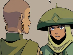 Toph, Aang, and Sokka then found Katara and she parted ways with Jiang and her crew after they let her know she will always be welcome to join them, naming her an honorary member.[10]