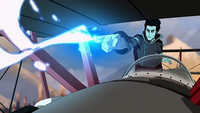 Not long after, the Triple Threats appeared with a modified airship, declaring that they would use poison gas unless the military withdrew. To meet Tokuga's demands and ward off him releasing poison gas on the city, Iroh was subsequently ordered by Raiko to withdraw his troops from the portal area to buy them some time until they could bring in a squadron of airplanes to take down Tokuga's airship. Iroh expressed concern for Asami and Wonyong Keum, who were being held hostage aboard the airship, but Raiko cautioned him against questioning a direct order. When Korra arrived at the spirit portal, he informed her about the airplane attack and that she had about five minutes to save Asami before the ship was brought down.[16]