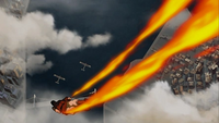 Once again utilizing the rocket propulsion technique, Iroh boarded a second plane, fatally damaging another plane with his firebending before commandeering the biplane. During the fight, Iroh's biplane was damaged by the last aircraft which had dropped a bomb on the tail of his aircraft. As the other biplane prepared to continue the bombing, Iroh used his firebending to detonate the remaining bombs in the attacking plane's bomb bay.