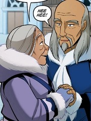 Several weeks after their wedding, Kanna reunited with her grandchildren in the capital city that had been built up from their original village in the South. After embracing them, she informed them of her marriage to Pakku, Hakoda's tales of their accomplishments during the war, and that their father had been elected head chieftain of the entire Southern Water Tribe.[14]