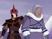 Nevertheless, the village was attacked by the Fire Nation and Kanna was directly threatened by Zuko. Aang quickly came to the rescue, revealing himself as the Avatar, and surrendered to protect the villagers. Following this, Kanna allowed Katara and Sokka to leave in order to save Aang and assist him in his goal of mastering all four elements, as she recognized that this was their ultimate destiny.[1]