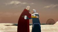 Later, Katara persuaded Sokka to train under a master, saying she would not have mastered waterbending without Pakku's tutoring.[21] According to Iroh, Pakku tended to proudly talk about her. Katara was overjoyed to learn about Pakku's engagement to Kanna[22] and their marriage two years later, although she would have like to have attended their ceremony if they had not eloped. Apart from their strong personal relationship, their professional one remained one of mutual respect, with Pakku asking for Katara's assistance with his new students Siku and Sura in the waterbending school he founded at the South Pole.[4]