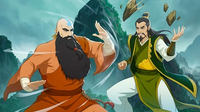 An airbending master,[13] Kelsang was a formidable practitioner of the bending art, his skills viewed in high esteem by friends and enemies alike.[1][18] Even from a young age, Kelsang was capable of completely incapacitating opponents with a blast of air. As a companion of Avatar Kuruk, Kelsang received unorthodox training from his companions, improving his own abilities by testing them against different styles of combat.[2]
