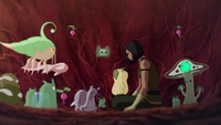 The light spirit migrated further to the Misty Palms Oasis sometime before Team Avatar arrived searching for Aiwei. It played with Pabu outside the Misty Palms Inn when Team Avatar went to check in,[4] and later sat in the iceberg at the center of the oasis, alongside many other spirits, when Mako and Bolin returned looking for Korra.[5]