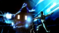 Lightning blast: A typical lightning bolt created by first separating positive and negative energies, and channeling the recombined charge into a focused point at the user's fingertips. When released, the bolt can form in a zig-zag or straight blinding line of electricity, striking its target with lethal speed and precision. It can be charged up for increased effectiveness or fired with little to no charge time as a surprise attack.[20]