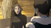 When Asami was kidnapped by the Triple Threat Triad, Lin, who had learned about Korra's romantic relationship with Asami, shared a brief yet tender moment with Korra, and assured her that they will be able to rescue Asami.[19]