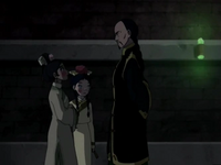 As Head of the Dai Li, he utilized them as his own secret police to silence anyone who would disrupt the common peace or dare stand against him, secretly imprisoning them under Lake Laogai and using brainwashing techniques to subdue them.[1][2] This effectively kept the citizens of Ba Sing Se in blissful ignorance and maintained the illusion that there was no war. He claimed to had preserved the last utopian society left on the planet by covering up all knowledge of the war, when in fact, the totalitarian traits of Ba Sing Se's government are marks of dystopia.[1] His power was so absolute that even the Council of Five could not break through his stranglehold on the Royal Palace.[2]