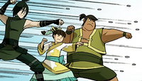 For thousands of years, earthbenders were not able to manipulate earth processed into metal.[2] During the Hundred Year War, the Fire Nation exploited this inability to detain captive earthbenders, such as when they forced earthbenders to work on a metallic prison rig in the middle of the ocean,[3] and locked King Bumi in a suspended metal cage following the takeover of Omashu.[4] Other nations used the same tactic, such as when Xin Fu and the Earth Rumble VI fighters captured Toph and Aang in metal cages and suspended them in the air, a situation impossible to escape from through the use of conventional earthbending.[5]