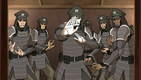 Metal partition: Metalbenders can create and manipulate a wide variety of gates, doors, and walls to accommodate their diverse needs. For example, in order to impede a group of bender supremacists from accessing the Earthen Fire Refinery, Toph built a life-size maze in front of the factory comprising numerous walls that she could open and close to her heart's content.[48] Decades later, Suyin used the technique more offensively, curving a thin metal wall to lash Lin with during a tussle between the two sisters.[30] Lin, meanwhile, used her metalbending to free Asami, Mako, and Bolin from prison by ripping their jail cell doors off their hinges and shortly thereafter to unbolt an underground door disguised as a wall that Equalists were using to hide one of their bases of operations.[2] A few years after that, she slid open the door to a warehouse with metalbending that she suspected was housing the Triple Threat Triad. Around the same time, General Iroh instructed his metalbending forces to set up and maintain a perimeter wall around the new spirit portal in Republic City.[35] The White Lotus and Earth Empire were also both known to operate metal doors, the former employing metalbending sentries to open and close Zaheer's prison doors[12][58] and the latter retaining soldiers to raise and lower a border checkpoint wall.[57] Aiwei similarly raised a thick wall of metal to stall Team Avatar while he escaped from Zaofu.[39] Eventually, Korra utilized her metalbending to shut a sliding door on a train to slow down one of several Earth Empire agents who was helping facilitate an attempted kidnapping of Prince Wu,[57] as well as to force open a hatch and pair of automatic sliding doors on an Earth Empire airship to kidnap Bataar Jr.[24]