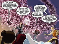 When Appa defended himself and the rest of Team Avatar with his massive tail from an attacking wolf spirit, the spirit released a swarm of moth wasps from his mouth, which quickly surrounded the individual members of Team Avatar. The moth wasps made it difficult for Katara to breathe and covered Sokka's arm so that he could not see it anymore. However, Azula quickly shot a bolt of lightning that the moth wasps pursued, leaving Team Avatar alone.[1]