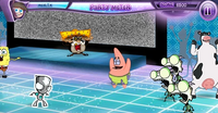 The first wave of antagonists to oppose the player's character is from the Invader Zim universe. All enemies must be knocked over a certain number of times to be defeated, with that number depending on what enemy is considered. After falling over twice, they will disappear from the game, and from where they had lain a barrage of balls spins across the dance floor. These balls should be collected for two reasons: one, that doing so raises the score counter by 100 points per ball, unless otherwise noted; and two, that doing so fills up the Party Meter a slight amount per ball. The Party Meter is a gauge of how many balls are necessary for collection until the player can employ his or her character's dance move. This dance move is a special attack that knocks every enemy on the floor to the ground.