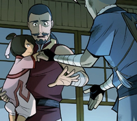 Weeks later, Noren accompanied his family when they visited the Fire Nation Capital for the first time since Ursa's exile.[6] While on the ship, he came up to Ursa after Zuko had left her and asked if she was okay. When she questioned his concern, he said that her hands were cold, which was something that only happened when she was scared. He recalled how they use to hold hands before performances, and it felt like holding a block of ice. After his wife assured him he would be fine, a panicked Ursa called for Aang to bring her daughter back on the boat, though when she tried to hug Kiyi, the little girl rebelled against the embrace and went up to her father. Noren picked her up and carried her below deck, per her request.[7]
