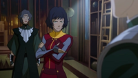 She also demonstrated a more serious demeanor, such as when she stopped the fight between Lin and her mother and angrily questioned why they would be fighting each other after so many years of separation, or whenever the subject of Kuvira was touched upon.