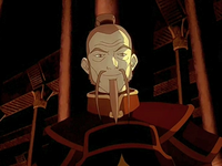 What little tolerance Ozai had kept for Zuko eventually vanished when Zuko "disrespected" him by speaking against one of his general's plans. This resulted in Ozai burning Zuko's eye, permanently scarring his son in an Agni Kai in which Zuko refused to participate. Zuko was banished after the merciful display he had shown during the Agni Kai and could only return home if he captured the Avatar.[20] However, he finally won back Ozai's respect when he helped his sister conquer Ba Sing Se, betrayed his uncle, and killed the Avatar, the latter of which Azula lied about to protect herself in the case that the Avatar was still alive.[11] Though Zuko was never a favorite of his, Ozai allowed Zuko to speak on the War Room meetings afterward, using his son's experience in the Earth Kingdom as a valuable asset for his final conquest.[9]