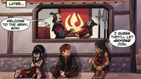 - In November 2007, in advertisement of Nickelodeon Magazine hosting a panel at the New York Anime Festival, the magazine's LiVEJOURNAL chief posted a page of "Private Fire" with edited dialogue from the characters. The page used was page seven, in which Aang originally exclaimed, "You're going to join the Fire Nation Army?!" This text was replaced with, "We're going to the NY Anime Fest!?" Sokka's had his dialogue on the page replaced with him explaining the date and time of the event, and Toph said that she would cosplay as Sparky Sparky Boom Man for the occasion.[2]