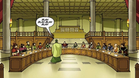 Some time after the events of the battle for Yu Dao, the professor was asked by Earth King Kuei to give a lecture in Yu Dao on ancient theories of government, in the hopes they could be used to "build a society of the future". In attendance at his lecture, among a number of other dignitaries, were Avatar Aang, Katara, Sokka, and Fire Lord Zuko, all of whom, with the exception of Katara, showed little interest in what the professor was saying. However, his mention of the word "family" piqued Zuko's interest, and upon the Fire Lord's request, the professor reiterated an ancient Earth Kingdom philosophy regarding the nature of family and government, and how the two are invariably intertwined. Upon finishing his statement, he returned to delivering his lecture with the same monotony as before.[1]