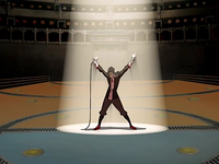 Later in the pro-bending season, he attended the semifinals to announce the teams as they entered the ring, introducing the Fire Ferrets during their matches. He also introduced the White Falls Wolfbats in their final game of the semifinals only shortly before he announced their quickly-achieved victory over the Mo Ce Mongoose Lizards.[2]
